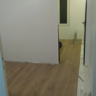 Pour la rénovation de l'appartement du haut, nous avons acheté pour 40m² de parquet stratifié, de deux styles différents, avec les plinthes, et un isolant acoustique à mettre en dessous, pour limiter le bruit.